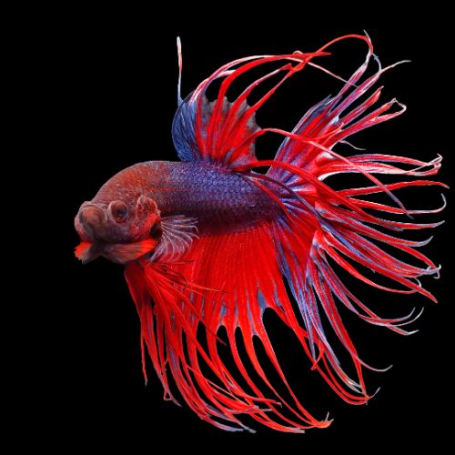 Rose Tail bettas have an exaggerated branching pattern in their fins, giving them a frilly appearance.